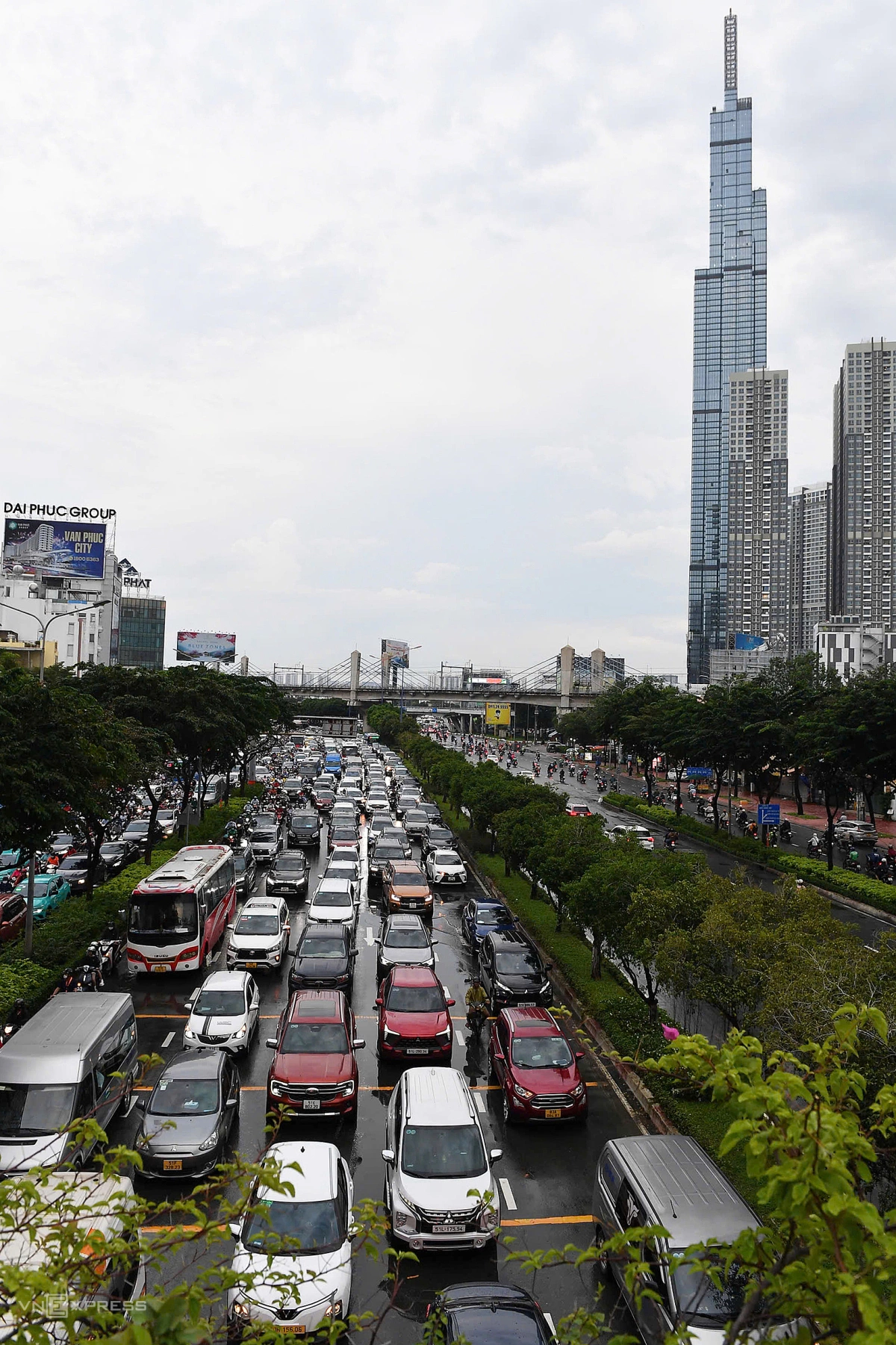 Tình trạng kẹt xe đã diễn ra sau khi mưa lớn vừa tạnh, khoảng 15h. Dòng ôtô nối đuôi nhau, nhích từng chút hướng vào quận 1.