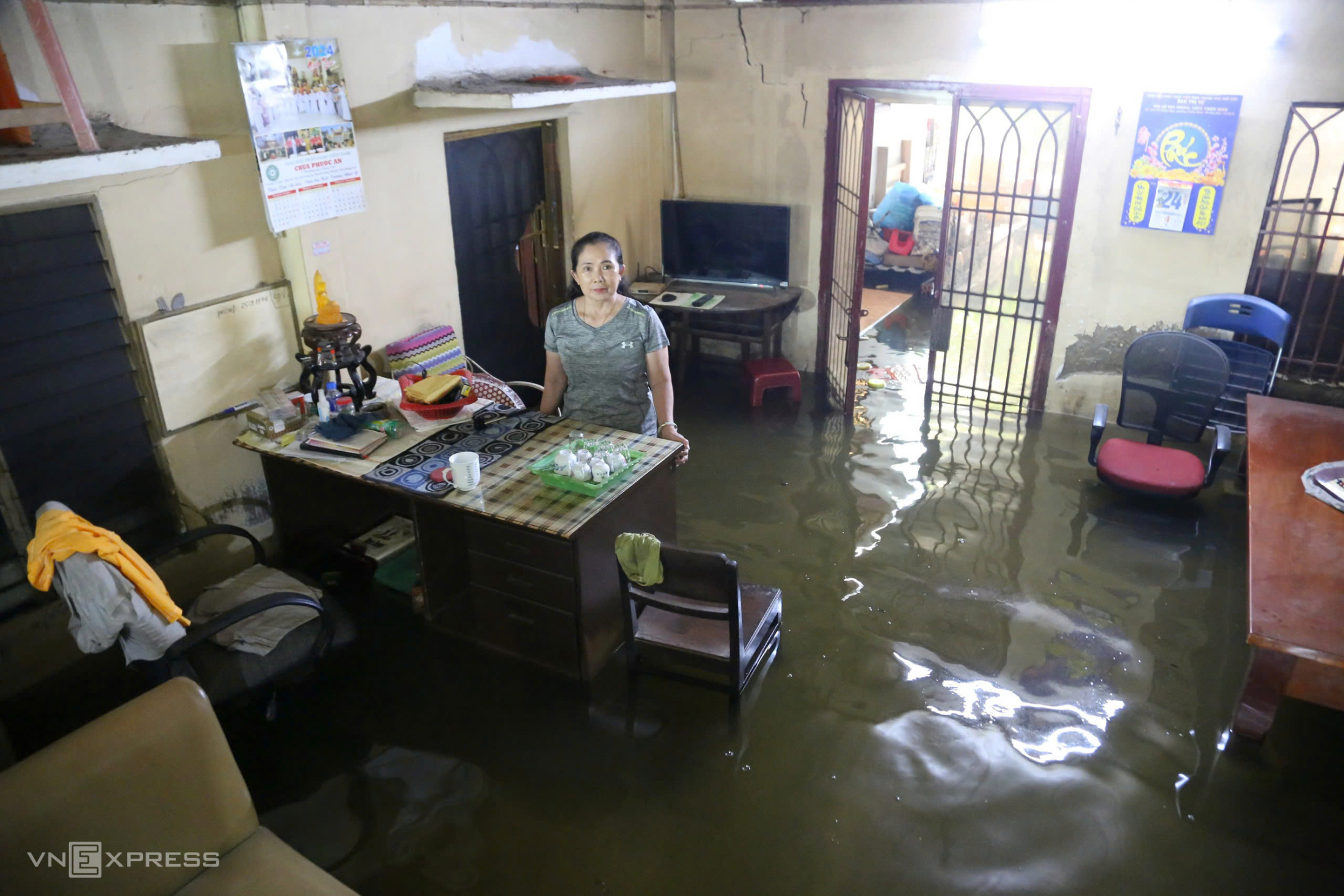 Ở gần đó, bà Phạm Thị Phương (62 tuổi) cho biết, tình trạng ngập đã diễn ra ba ngày nay, nên gia đình phải kê cao bàn ghế, tủ giường.