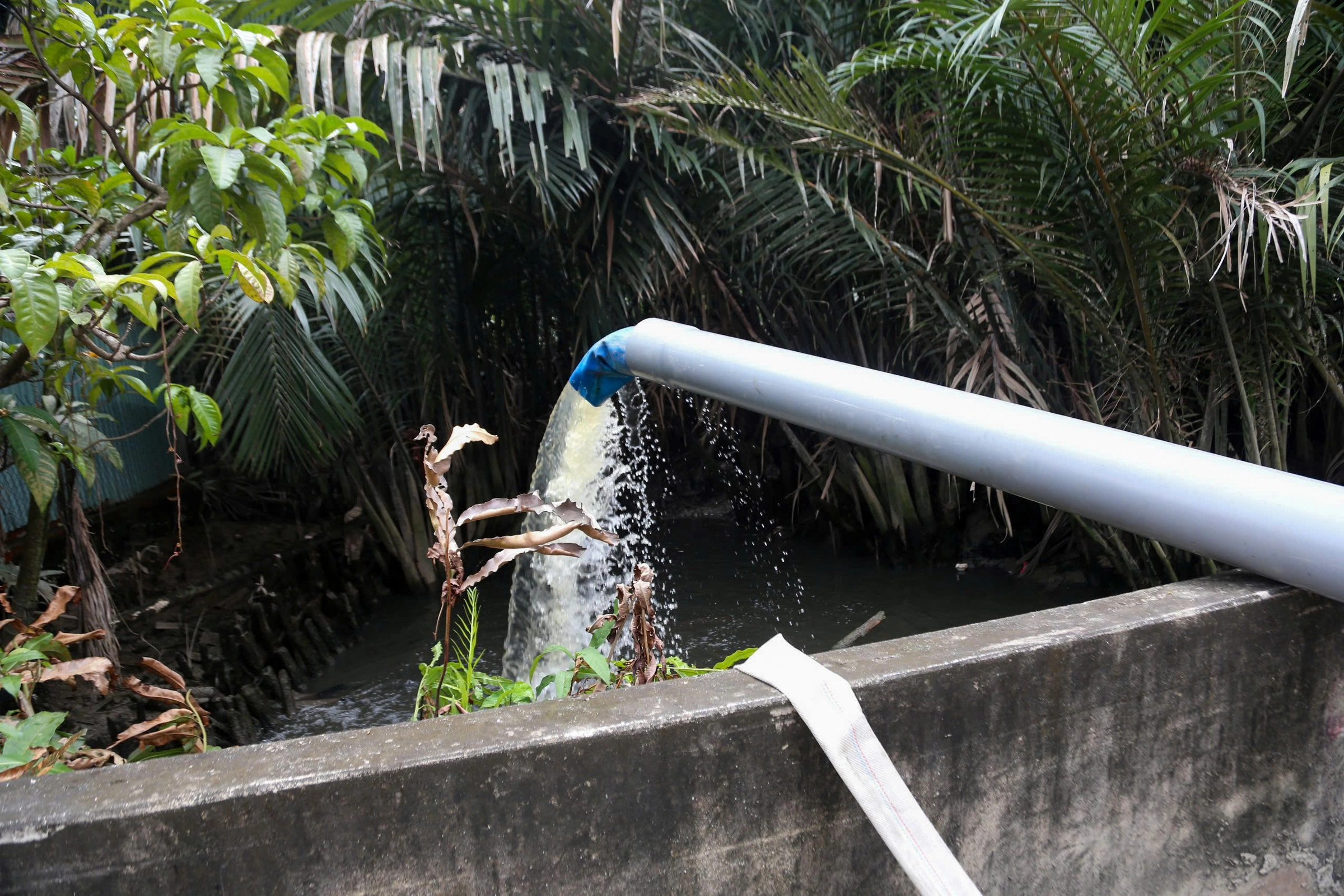 Để thoát nước, Phòng Cảnh sát PCCC đã huy động hai máy bơm từ các vùng trũng của khu dân cư ra ngoài sông.