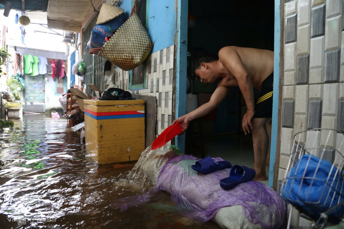 Bà Đỗ Thị Minh Quân, Bí thư phường Bình Quới, cho biết triều cường cao nhất trong nhiều năm qua tại khu vực khiến nhiều căn nhà ngập sâu. Chính quyền rà soát phát hiện nhiều vết nứt trên bờ kè nên báo với thành phố có phương án hỗ trợ khẩn cấp. Địa phương huy động nhiều lực lượng hỗ trợ người dân di dời đồ đạc.