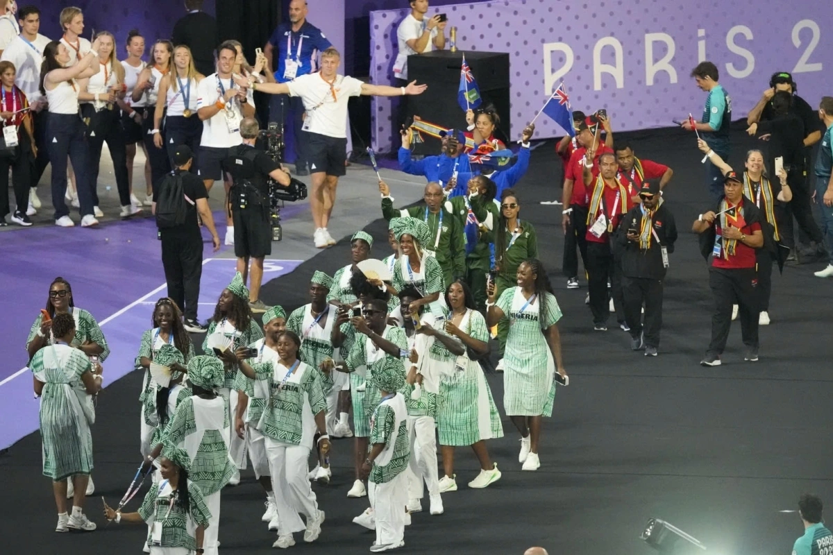 Đoàn Nigeria gây chú ý bằng trang phục mang tính truyền thống, với những VĐV cười tươi khi diễu hành. Nigeria có 88 VĐV tới Paris 2024, nhưng không đạt huy chương nào. Nữ cua-rơ Ese Lovina Ukpeseraye thậm chí không được đoàn trang bị xe đạp, nhưng cô đã được Đức cho mượn để thi đấu.
