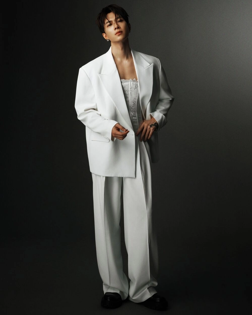 Cuối tháng 9, khi đến Pháp dự Paris Fashion Week, anh chọn phong cách sporty chic với cả bộ màu trắng ngà của Lacoste, gồm quần shorts thể thao, áo polo và áo khoác dáng dài.