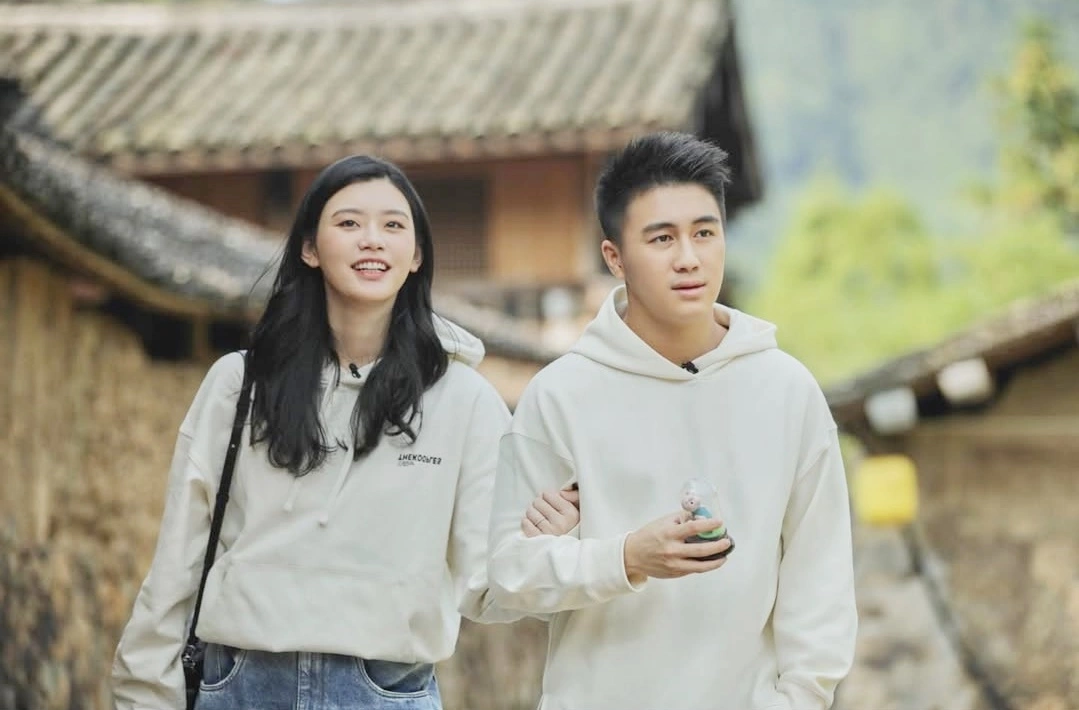 Cặp sao diện áo nỉ có mũ đồng điệu khi tham gia show thực tế về gia đình hồi 2023. Ảnh: Mango TV