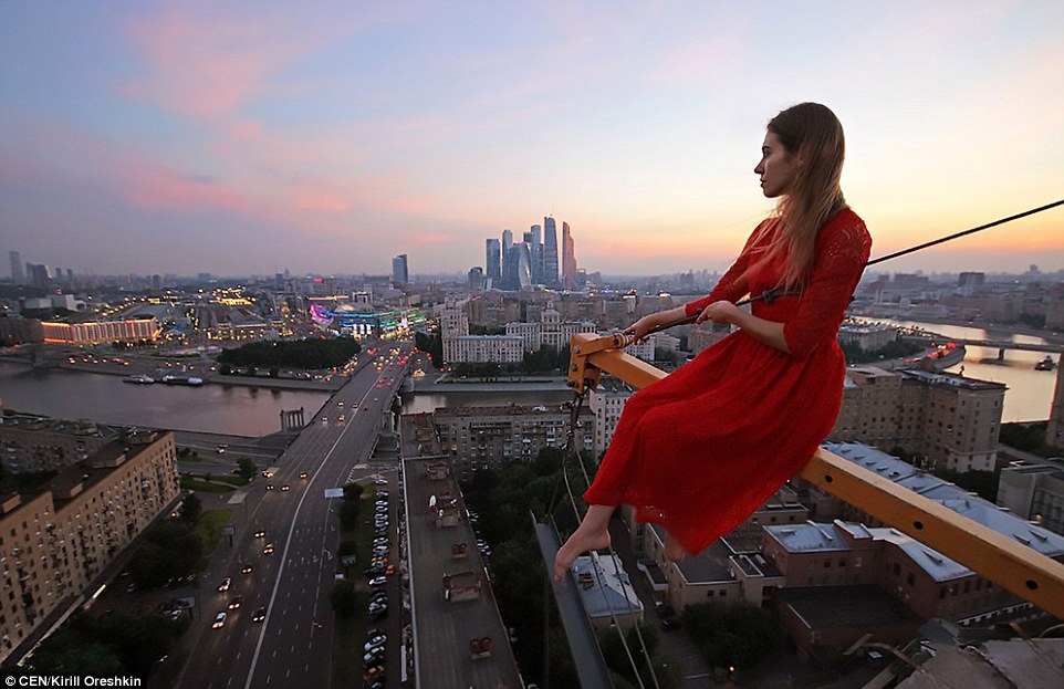 Cô đã dành nhiều tuần đi khắp Trung Hoa đại lục và đặc khu Hong Kong, trèo lên đỉnh của các công trình để chụp ảnh. Trong ảnh, cô đang tạo dáng trên đỉnh của một tòa tháp ở thành phố Thiên Tân, Trung Quốc.