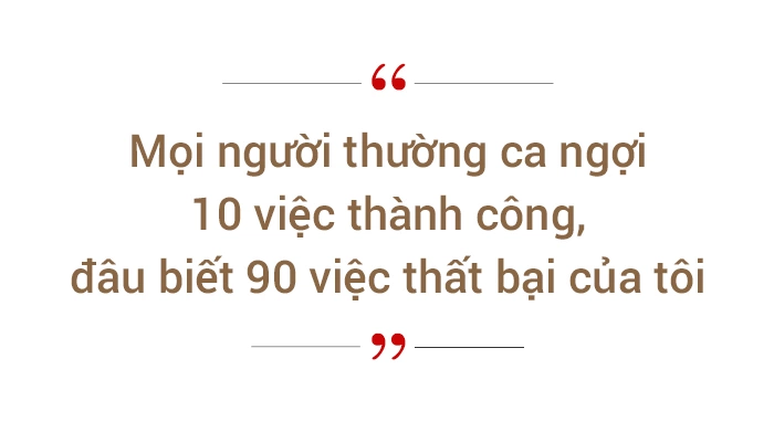 Với tôi, không có 90 lần thất bại thì sẽ không có 10 lần thành công. Quan trọng là mình có dám làm 100 việc, thất bại 90 việc chỉ để thành công 10 việc hay không. Nếu chỉ làm 1-2 việc, thì thất bại là hiển nhiên, lý do cũng nhiều.