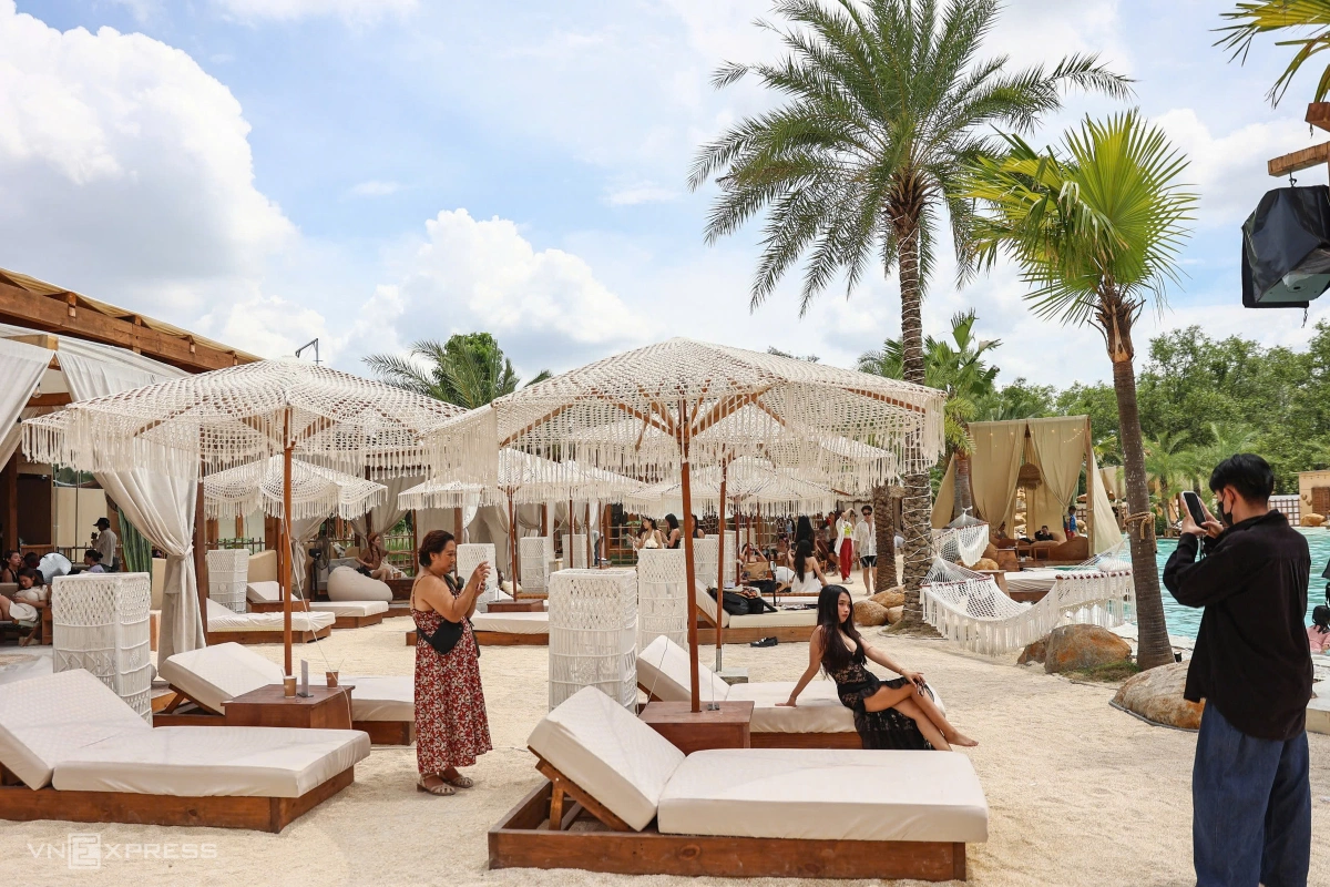 Nguyễn Hồ Lệ Quyên, TP Thủ Đức, cho biết đến đây vì quán "hot" trên mạng xã hội, bày trí ấn tượng theo phong cách biển nhiệt đới. Du khách 19 tuổi nhận xét hồ bơi rộng, nước sạch, khu vực phòng tắm và thay đồ tiện nghi, được nhân viên hỗ trợ nhiệt tình.