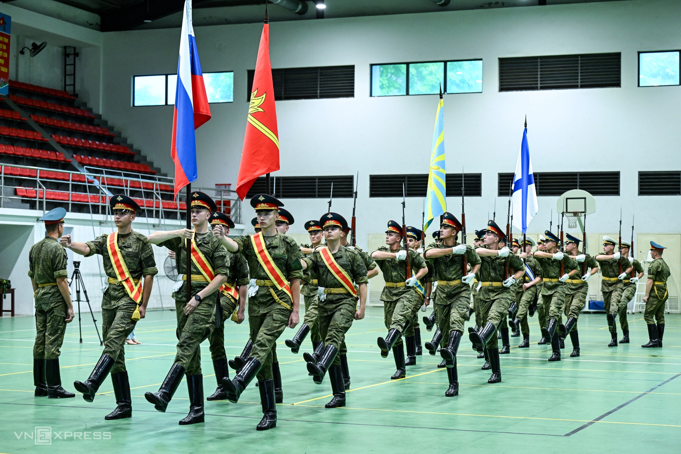 Các chiến sĩ đại diện khối Lục quân Nga. Khí hậu Việt Nam mùa này nóng ẩm, mưa nhiều song không gây trở ngại lớn với các quân nhân đến từ xứ lạnh. Họ nhanh chóng thích nghi, có tính kỷ luật cao từ luyện tập tới tham gia các hoạt động ngoài lề. Sau mỗi buổi tập, đoàn có thể sử dụng thoải mái bể bơi, phòng gym, sân thể thao trong khuôn viên Học viện Viettel.