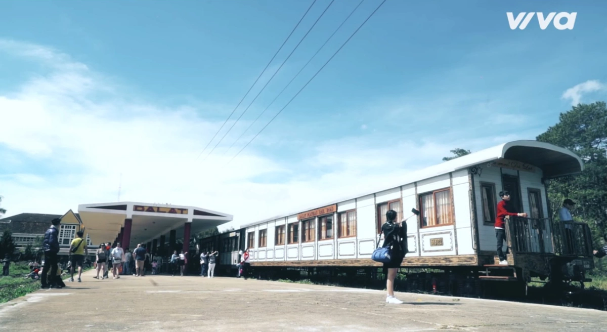 Một trong những điểm dừng chân là ga Đà Lạt, được cho là nhà ga cao nhất Việt Nam và cổ nhất Đông Dương. Tại đây, Vinh giới thiệu mọi người không nên bỏ qua quán cà phê nằm trong toa xe lửa.