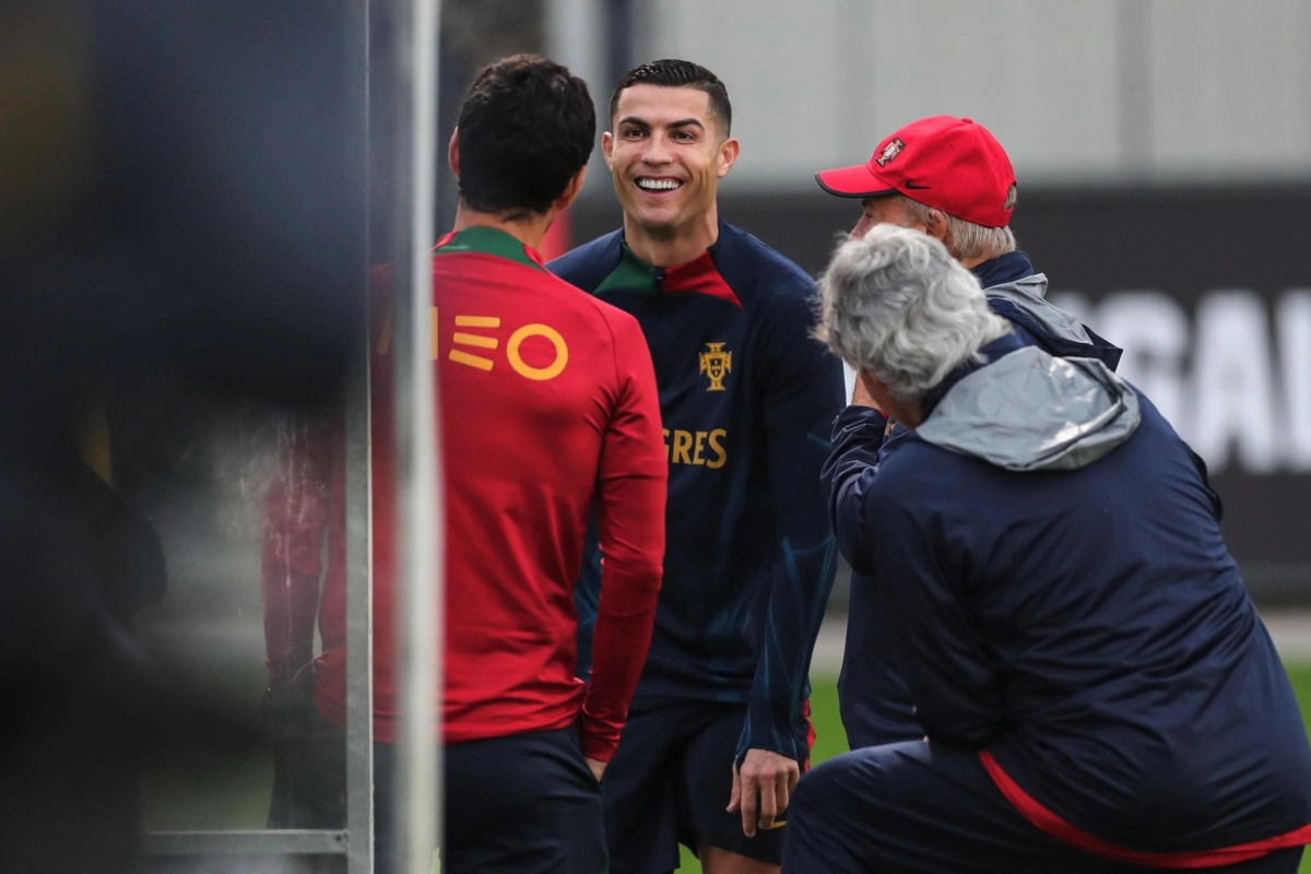 Ronaldo tỏ ra rất thoải mái, cười đùa với ban huấn luyện đội tuyển Bồ Đào Nha, dù rằng trước đó hai ngày anh cáo ốm và không tham dự trận gặp Fulham ở Ngoại hạng Anh.