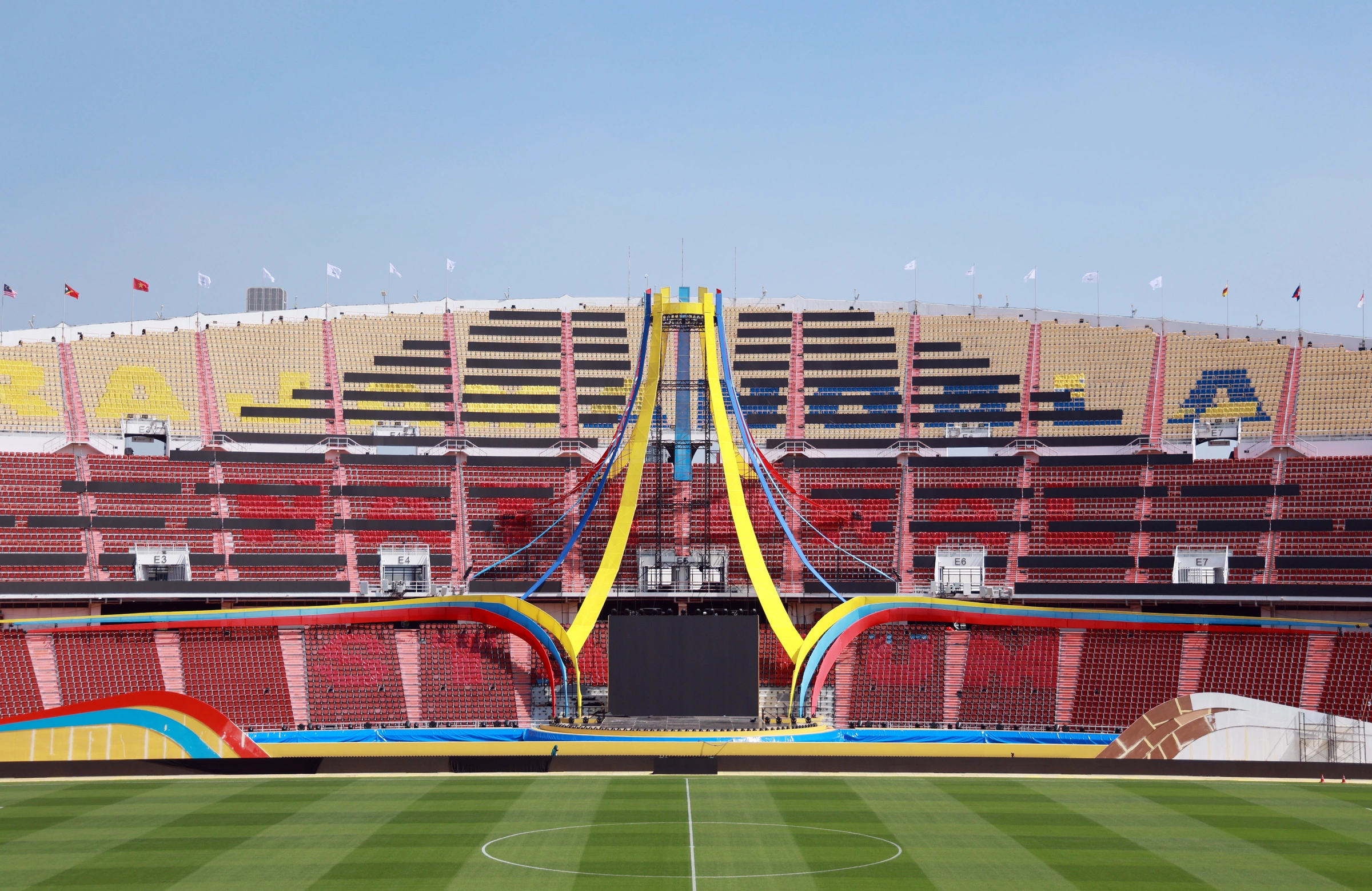 Quốc kỳ của 11 nước tham dự Đại hội đã được dựng lên ở khu vực khán đài D, gồm: Việt Nam, Thái Lan, Indonesia, Malaysia, Singapore, Philippines, Myanmar, Campuchia, Lào, Brunei và Timor Leste. Đây là những thành viên của Liên đoàn Thể thao Đông Nam Á – đơn vị chịu trách nhiệm điều phối và giám sát đại hội.