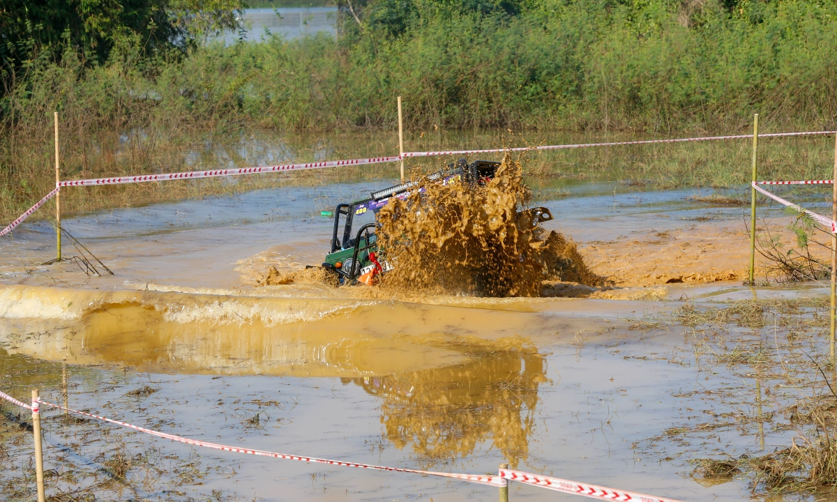Không chỉ vượt qua những cung đường trơn trượt, dốc thẳng đứng, vách nghiêng, các tay đua còn thử thách ở cả những đoạn đường đầm lầy, nước sâu.