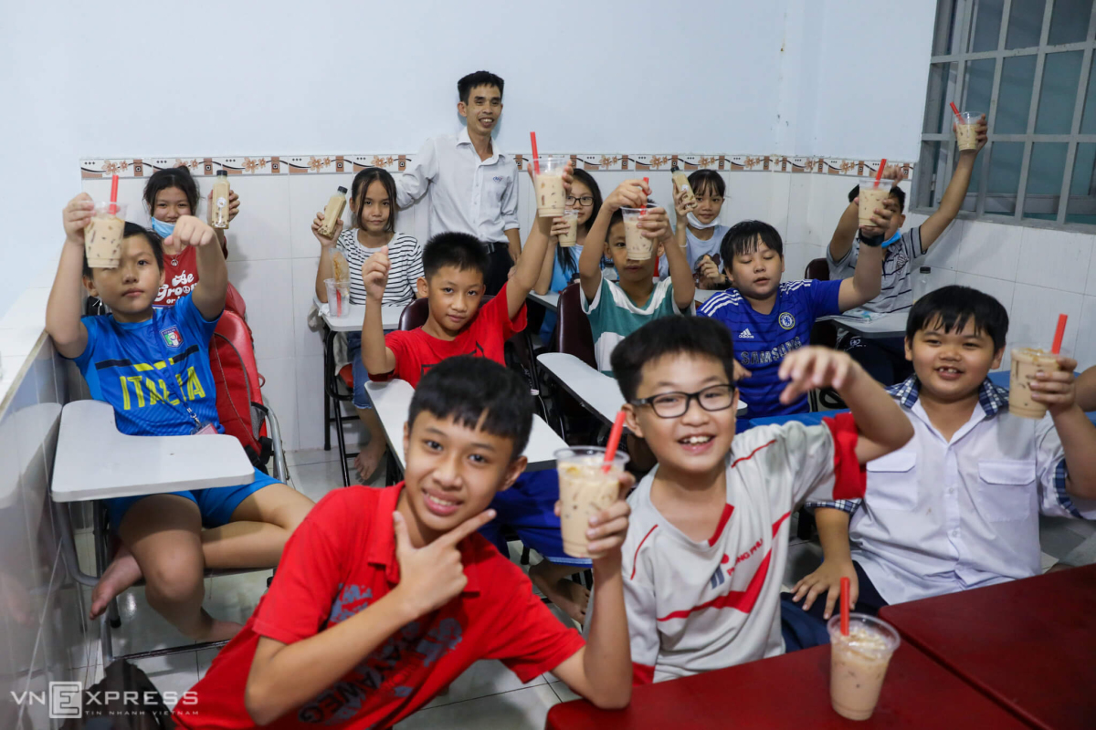 Khoảng mỗi tháng một lần, thầy Khánh lại trích một phần thu nhập từ đồng lương công nhân mua đồ ăn vặt, bánh kẹo hoặc tổ chức nấu nướng để đãi học trò.