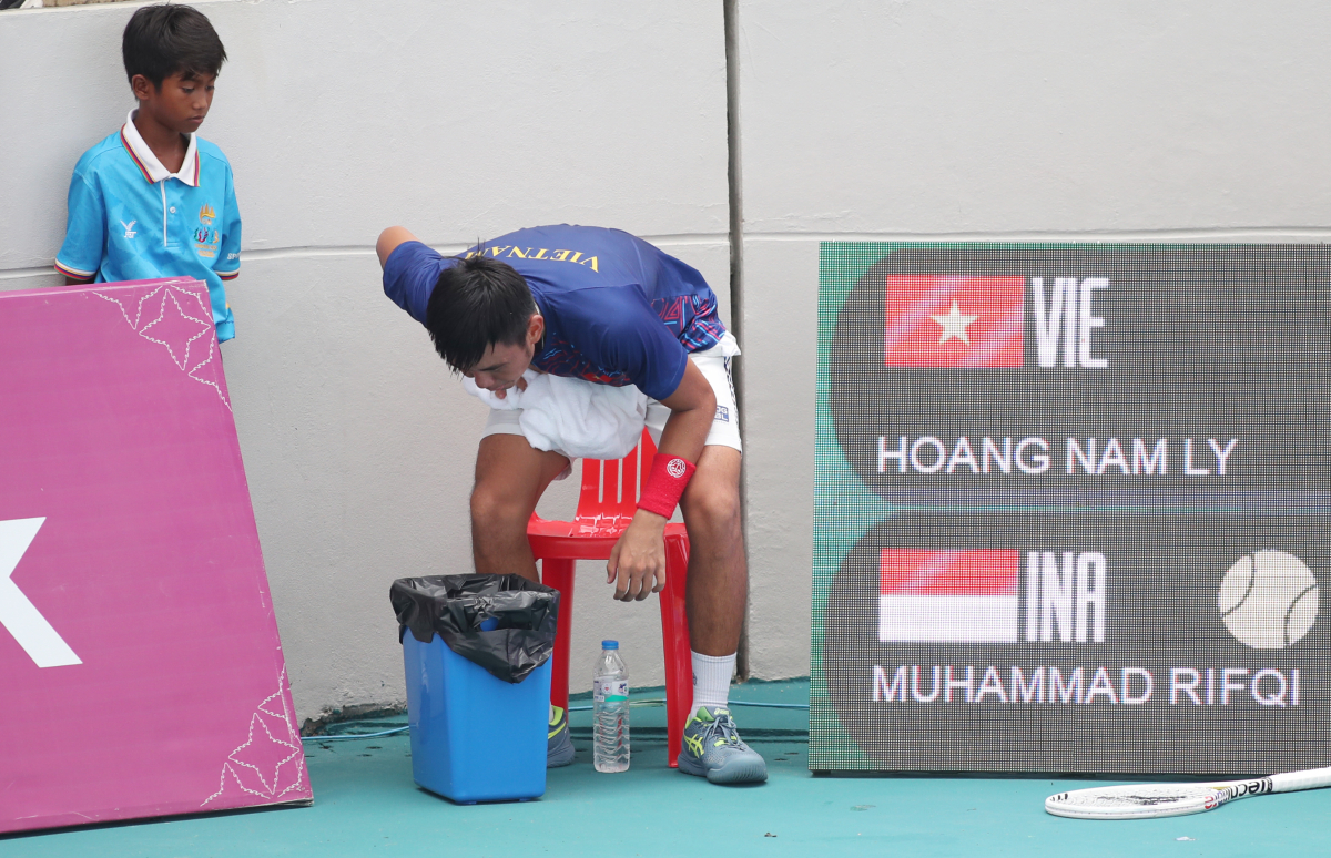 Tay vợt Việt Nam sau đó nôn ói ngay trên sân.