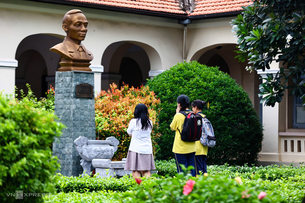 Cách đó khoảng 2,5 km, từ 14h, hơn 400 thí sinh các trường THPT Lê Quý Đôn, Marie Curie, Nguyễn Thị Minh Khai, tập trung tại trường Lê Quý Đôn, quận 3 để làm thủ tục thi. Ảnh: Thanh Tùng