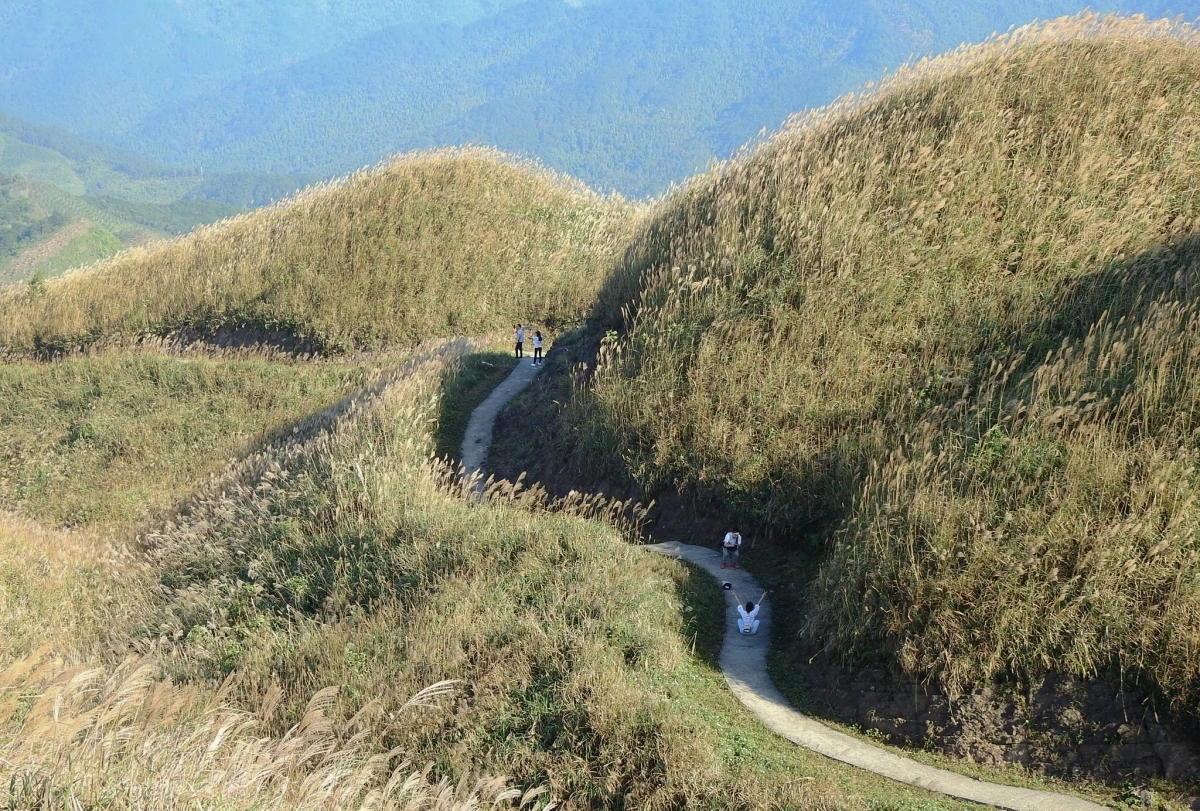 Đường từ khu vực chân mốc để lên đến cột mốc dài gần 1 km và có độ thoải theo các bậc thang để du khách vừa ngắm cảnh, vừa thảnh thơi chụp ảnh với những bụi lau bên đường.