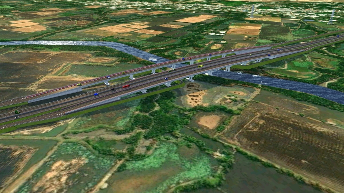 Vành đai 3 và đường song hành qua sông Rạch Chay, huyện Nhơn Trạch.