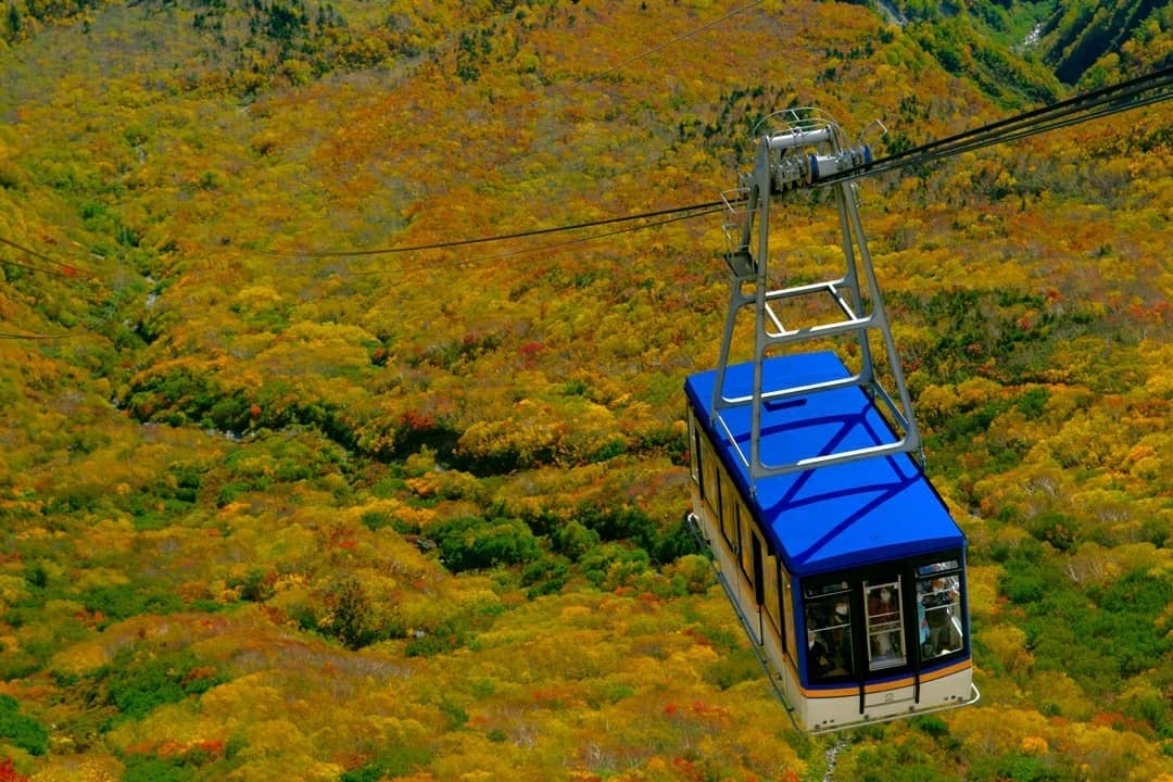 Du khách đi cáp treo Tateyama ngắm cảnh mùa thu trên núi Daikanbo, Kumamoto, Kyushu, miền nam Nhật Bản ngày 11/10. Ảnh: hiroyuki_gwk/Instagram