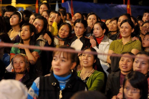 Đông đảo khán giả khu vực thị trấn Nông trường Mộc Châu được thưởng thức đêm nhạc miễn phí với sự xuất hiện của nhiều ngôi sao ca nhạc đang nổi tại Việt Nam tối 14/10. |
