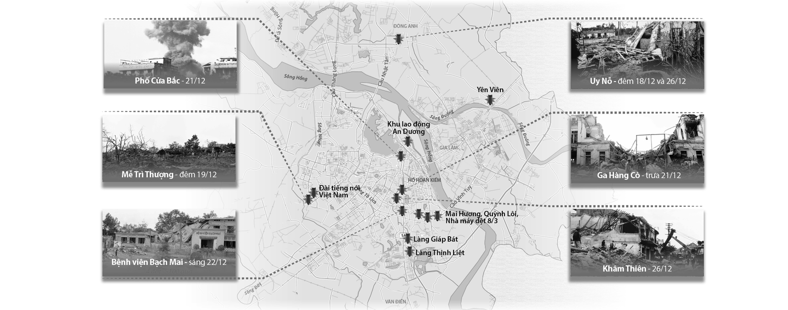 Liên tục 12 ngày đêm, không quân và Hải quân Mỹ huy động 193 máy bay chiến lược B52 và gần 1.000 máy bay chiến thuật các loại. B52 rải hơn 20.000 tấn bom nhằm hủy diệt Hà Nội, Hải Phòng và các tỉnh miền Bắc, đưa nơi này "về thời kỳ đồ đá", gỡ thế bế tắc trên bàn đàm phán Paris.