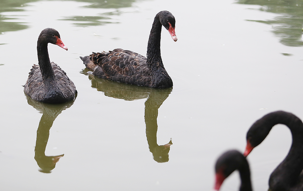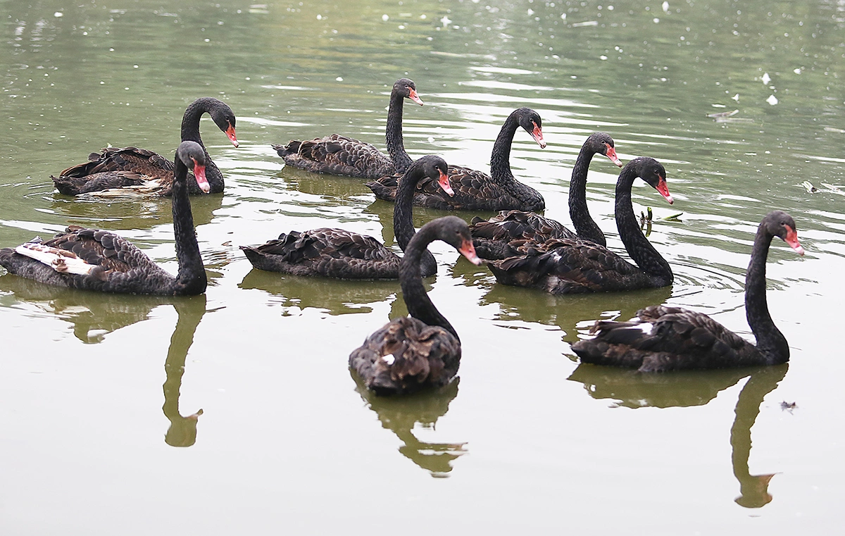 Hơn 20 cặp thiên nga đen và trắng bơi lội tung tăng trong diện tích mặt nước 200 m2 tại một trang trại ở huyện Thanh Trì, Hà Nội.