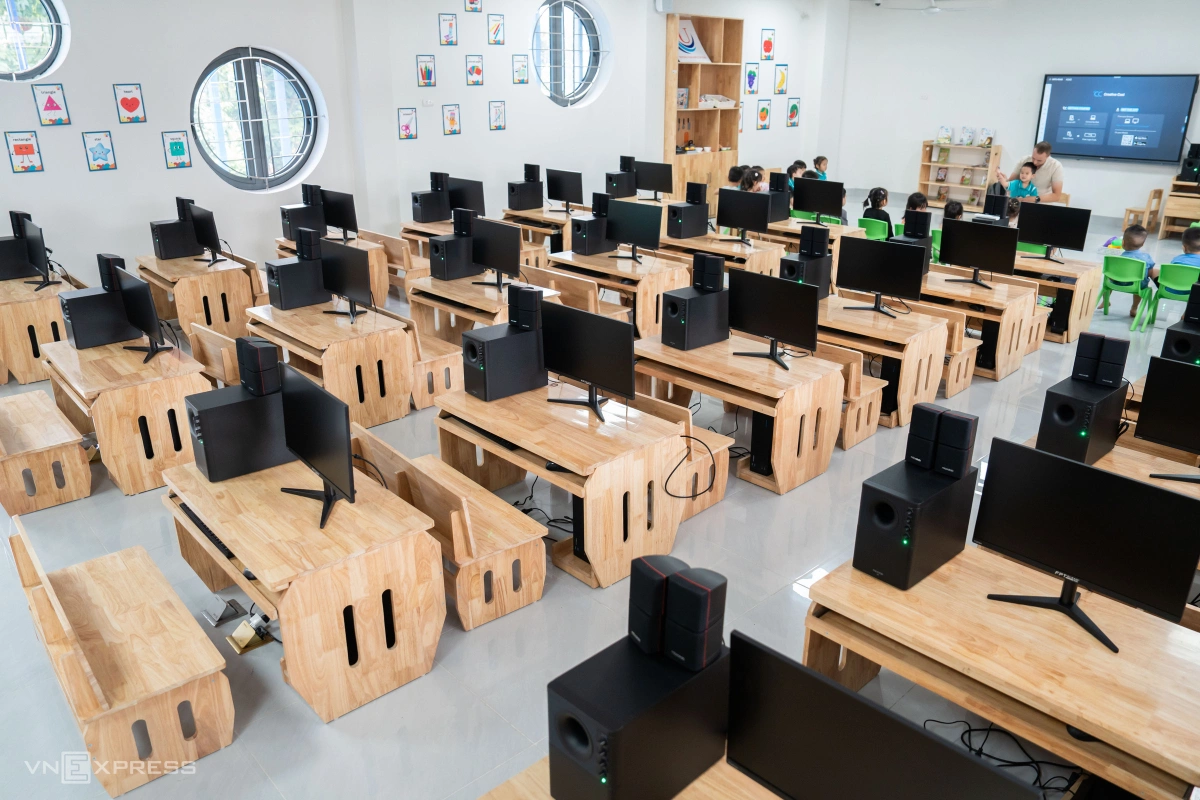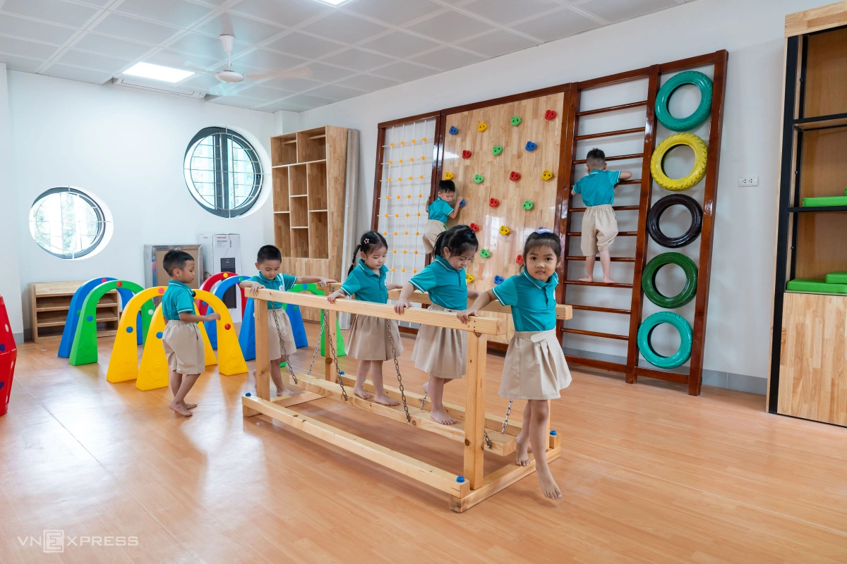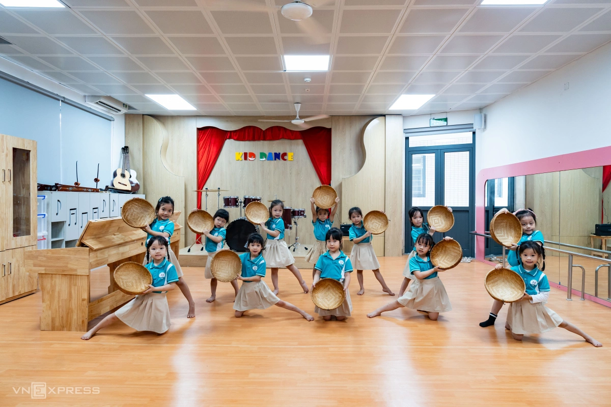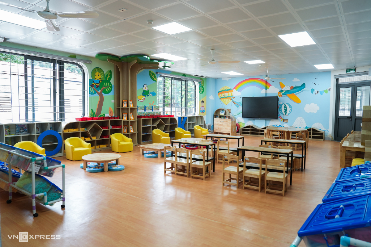 Một lớp học rộng trung bình hơn 130 m2, gồm một gian chính để giáo viên và trẻ học tập, sinh hoạt chung, hai phòng kho đựng đồ và một ban công. Các lớp đều có TV 65 inch và một đàn organ để giáo viên tổ chức hoạt động cho trẻ.