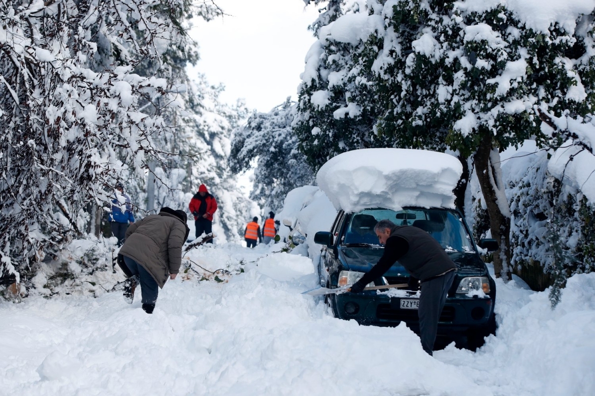 Tuyết phủ khắp thung lũng Bekaa, miền đông Lebanon, hôm 17/2. Những cơn gió lớn đi kèm đã khiến nhiều khu vực rộng lớn ở Lebanon mất điện, trong khi lực lượng cứu hộ phải giải cứu nhiều người bị mắc kẹt trong xe ô tô phủ đầy tuyết.