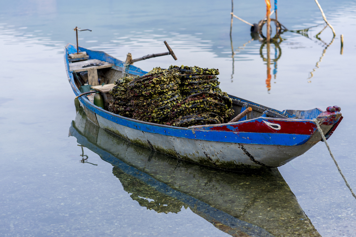 Người dân nuôi hàu trên những chiếc lốp xe cũ và vận chuyển vào bờ bằng thuyền khi số hàu đã đủ tuổi.