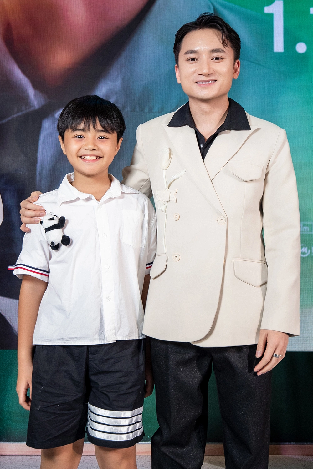 Diễn viên chính Đỗ Nhật Hoàng (phải) vào vai Phúc lúc trưởng thành bên Hạo Khang - đóng nhân vật thuở nhỏ. Nhật Hoàng 27 tuổi, xuất thân là vũ công, từng tham gia vũ đoàn Bước Nhảy. Anh gây chú ý với ngoại hình điển trai khi xuất hiện trong show truyền hình Người ấy là ai 2022.