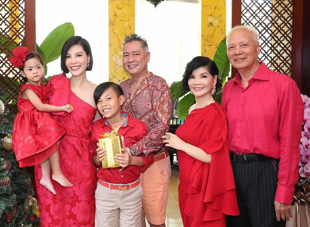 Vi Anh quấn quýt bên bà ngoại. "Tôi luôn mong các con hiểu và cảm nhận được giá trị tình cảm gia đình qua những dịp như thế này", Vũ Cẩm Nhung nói.