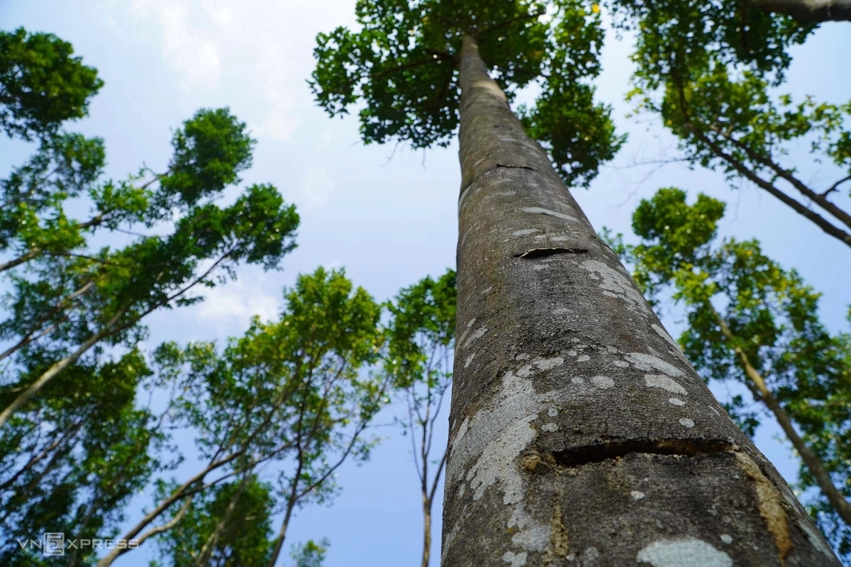 Công nhân dùng cưa cắt vào thân cây tạo vết thương. Chu vi gốc trung bình của toàn vườn gần 100 cm, những cây lớn nhất lên tới gần 200 cm. Độ cao của cây từ 8-12 m.