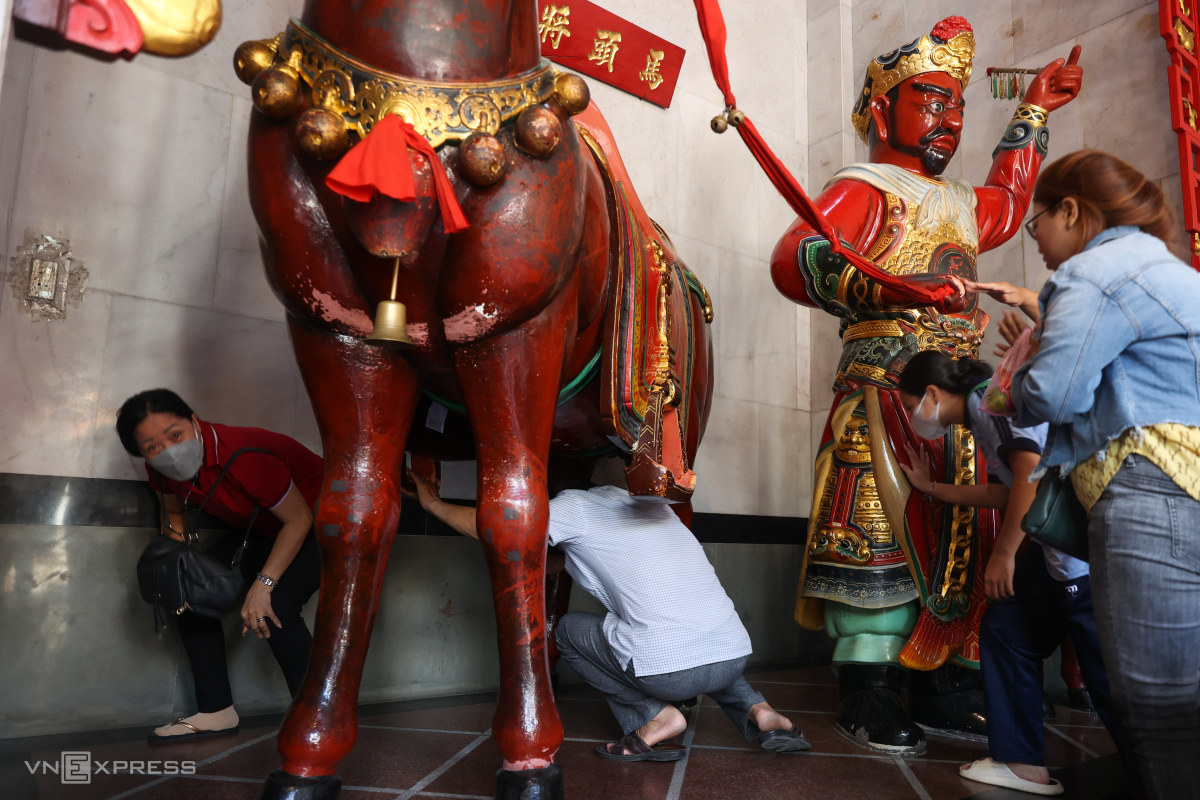 "Dân gian quan niệm, đàn ông chui sang bụng ngựa Xích Thố 7 lần, đàn bà là 9 lần sẽ gặp nhiều may mắn, phước lành trong năm mới. Vì vậy, dịp lễ Tết và ngày rằm rất đông khách tới viếng chùa", ông A Quang, 65 tuổi, ngụ quận 5 cho biết.