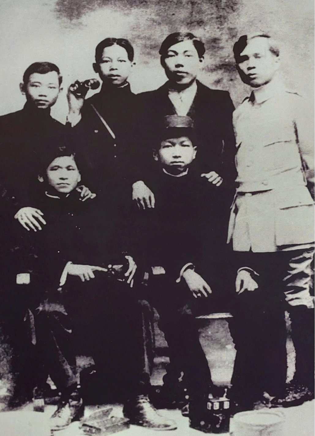 Chủ tịch Tôn Đức Thắng (áo trắng, 1888-1980) cùng những người bạn lính thợ Việt Nam tại quân cảng Toulon (miền Nam nước Pháp) năm 1917. Ông quê ở cù lao Ông Hổ, xã Mỹ Hòa Hưng, TP Long Xuyên, An Giang, thường được người dân gọi là Bác Tôn.